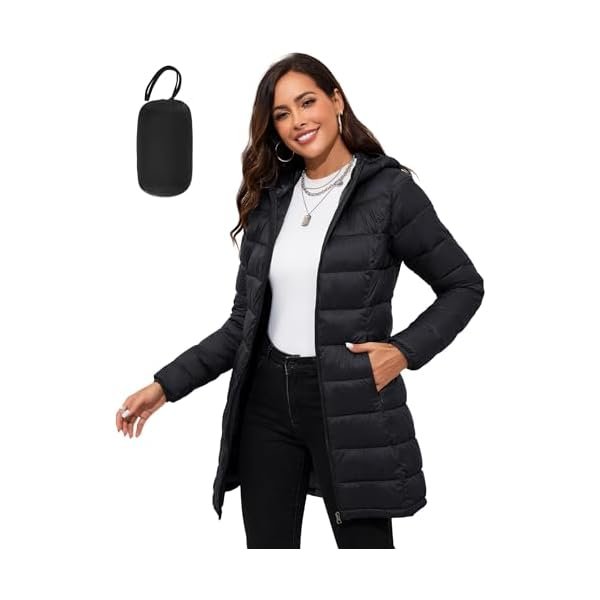Women Lightweight Down Puffer Coat, Women Packable Hooded Mid-Length Winter puffer Jacket